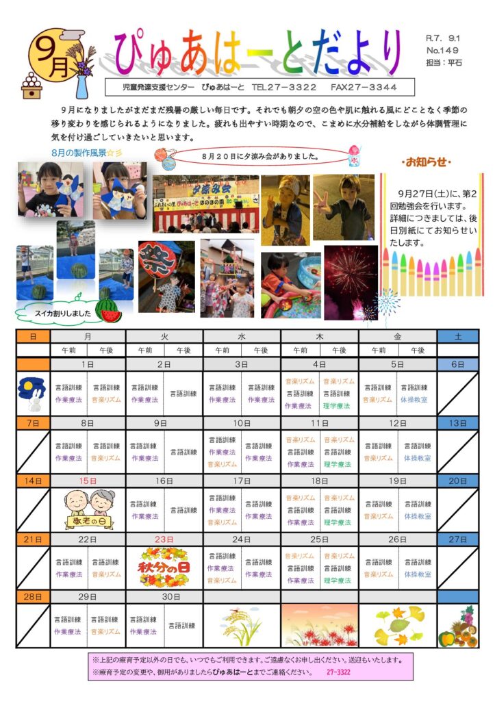 水曜日 | 言語訓練 感覚統合訓練 職員指導 |