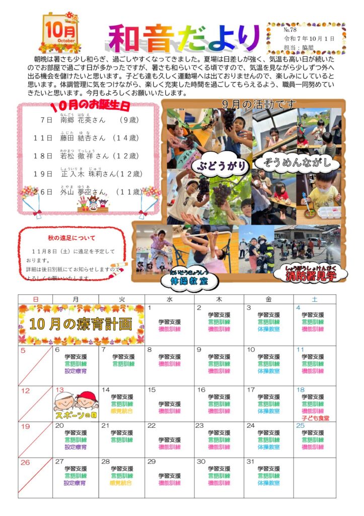 さぽーとハウス和音は、訓練を主とした少人数による療育(重症心身障がい児を含む)施設です。
